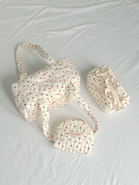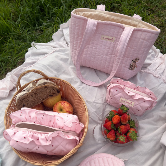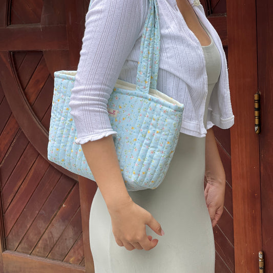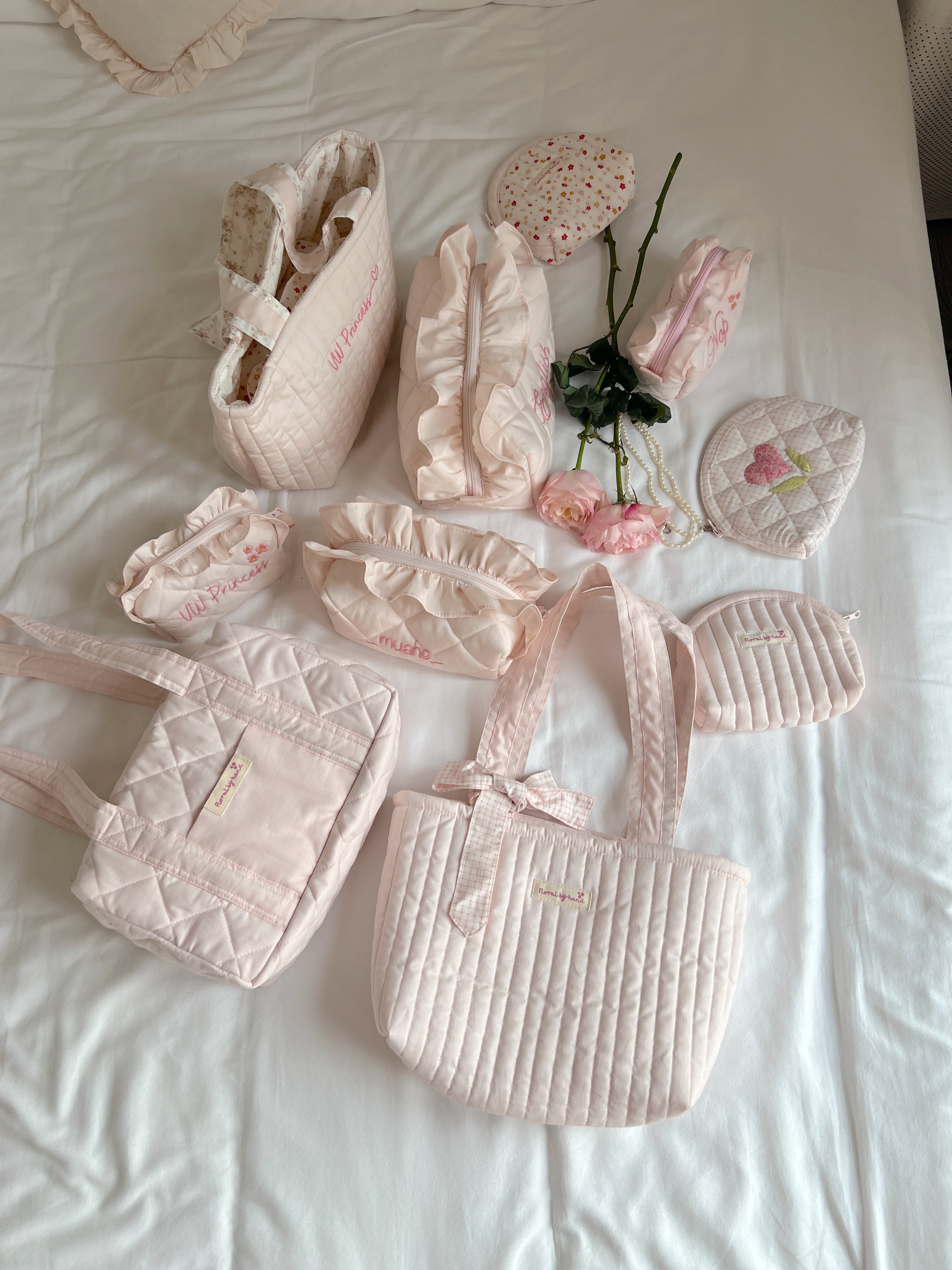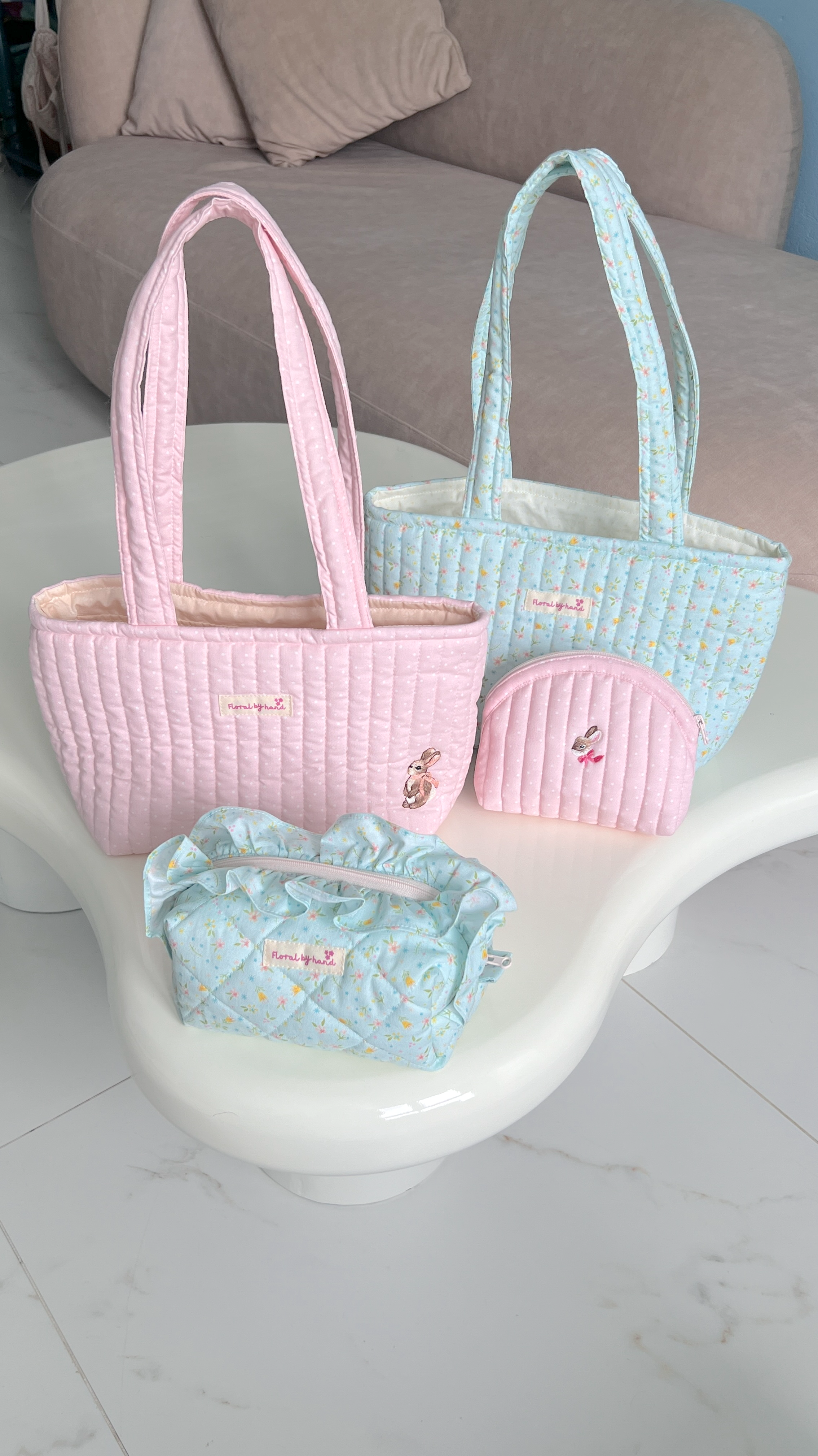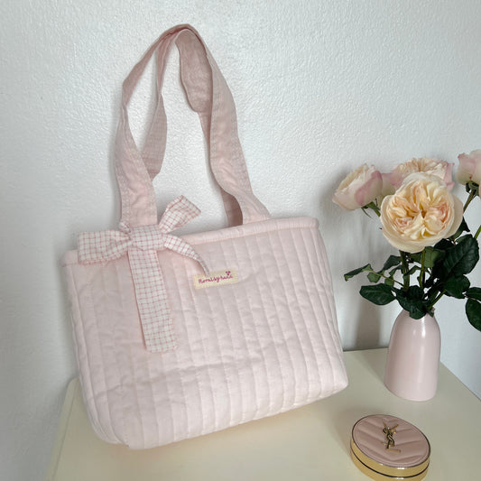 Pastel Pink Quilted Tote Bag - Hand-embroidery