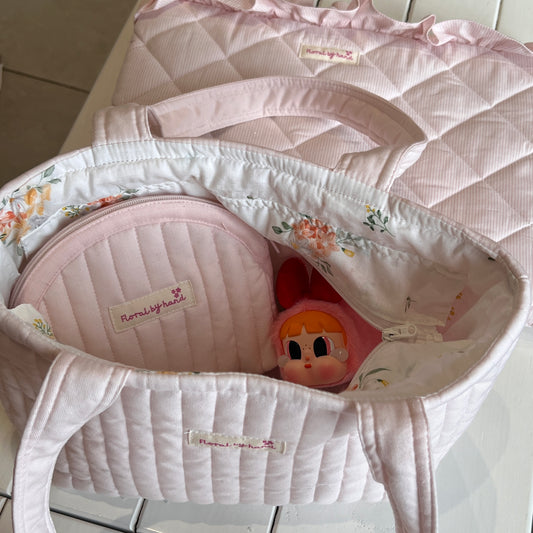 Pastel Pink Quilted Tote Bag - Hand-embroidery optional