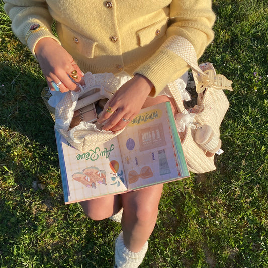 Cream Cafe au lait Bow Tie Tote Bag - Embroidery optional - Handmade