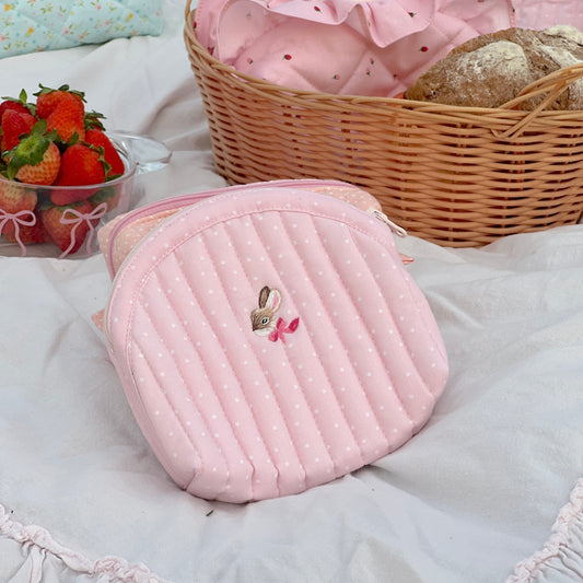 Pastel Pink Ruffle Pouch - Hand-Embroidery