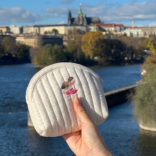 Pastel Pink Ruffle Pouch - Hand-Embroidery